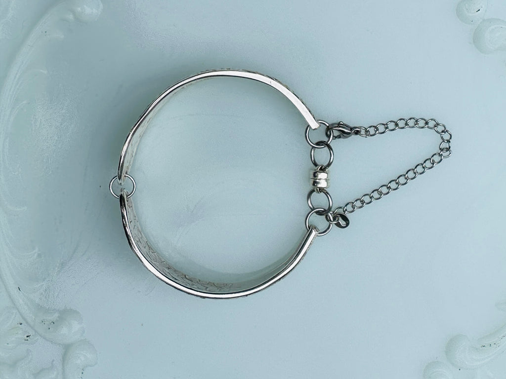 2 Piece bracelet from vintage silver-plate spoon handles with magnetic closure and stainless steel safety chain.