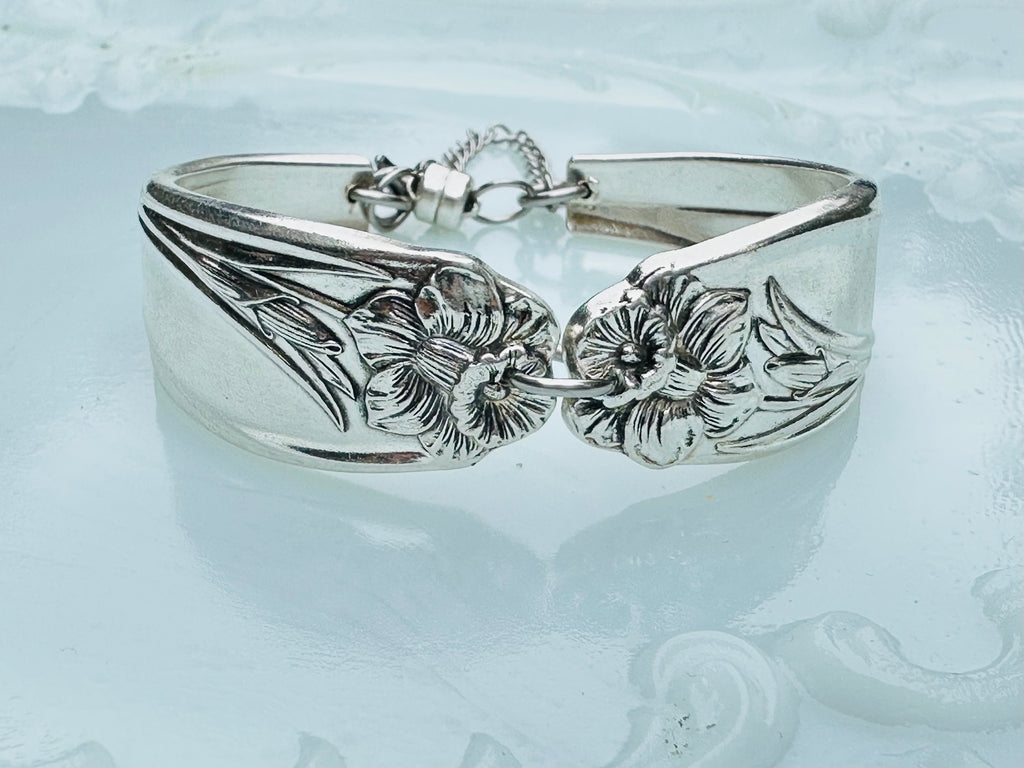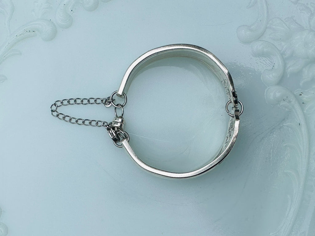 2 Piece bracelet from vintage silver-plate spoon handles with magnetic closure and stainless steel safety chain.